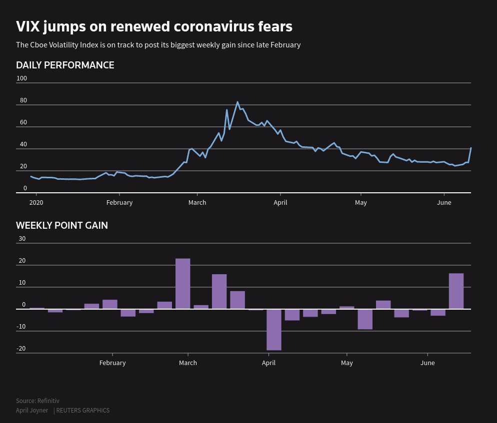 This is the main question on investors' minds this weekend. After a consistent multi-week drift lower in the Cboe volatility index (VIX), Thursday's sell-off saw a complete reversal, closing at its highest level since April 23rd as fears of a second wave of the virus took hold.